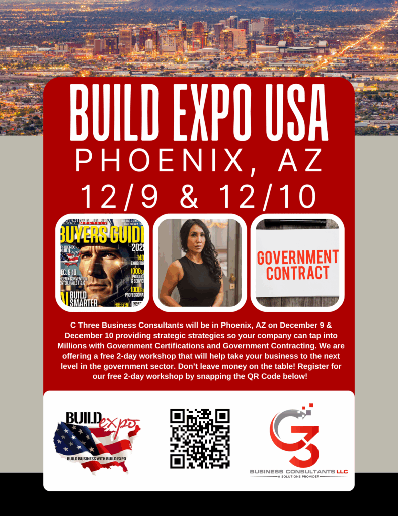 PHOENIX – We’re bringing our intensive 2-Day Government Certification & Contracting Workshop to Build Expo USA for the VERY FIRST TIME on December 9-10, 2025!